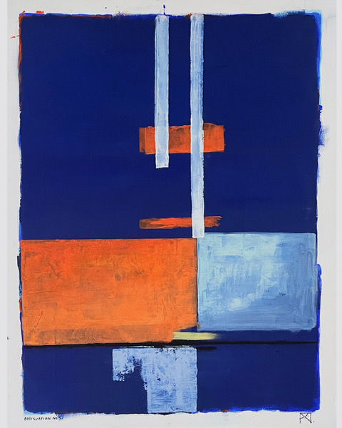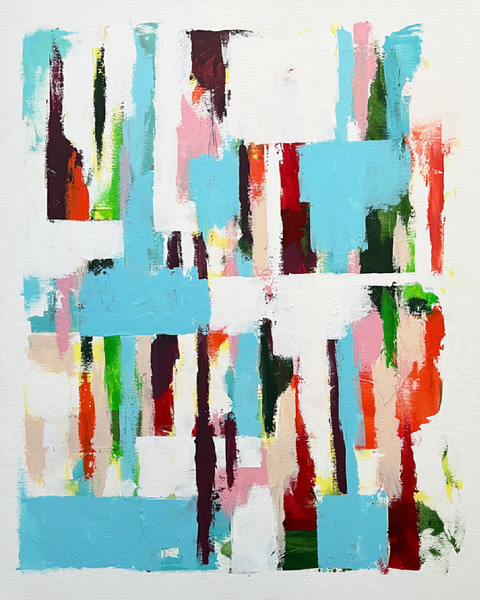 Att inte ha en plan klar när jag påbörjar en målning ser jag som en fantastisk utmaning och drivkraft i mitt måleri. Jag väljer medvetet att inte ge mina verk titlar, för att istället låta betraktaren fritt associera och finna sin egen tolkning.